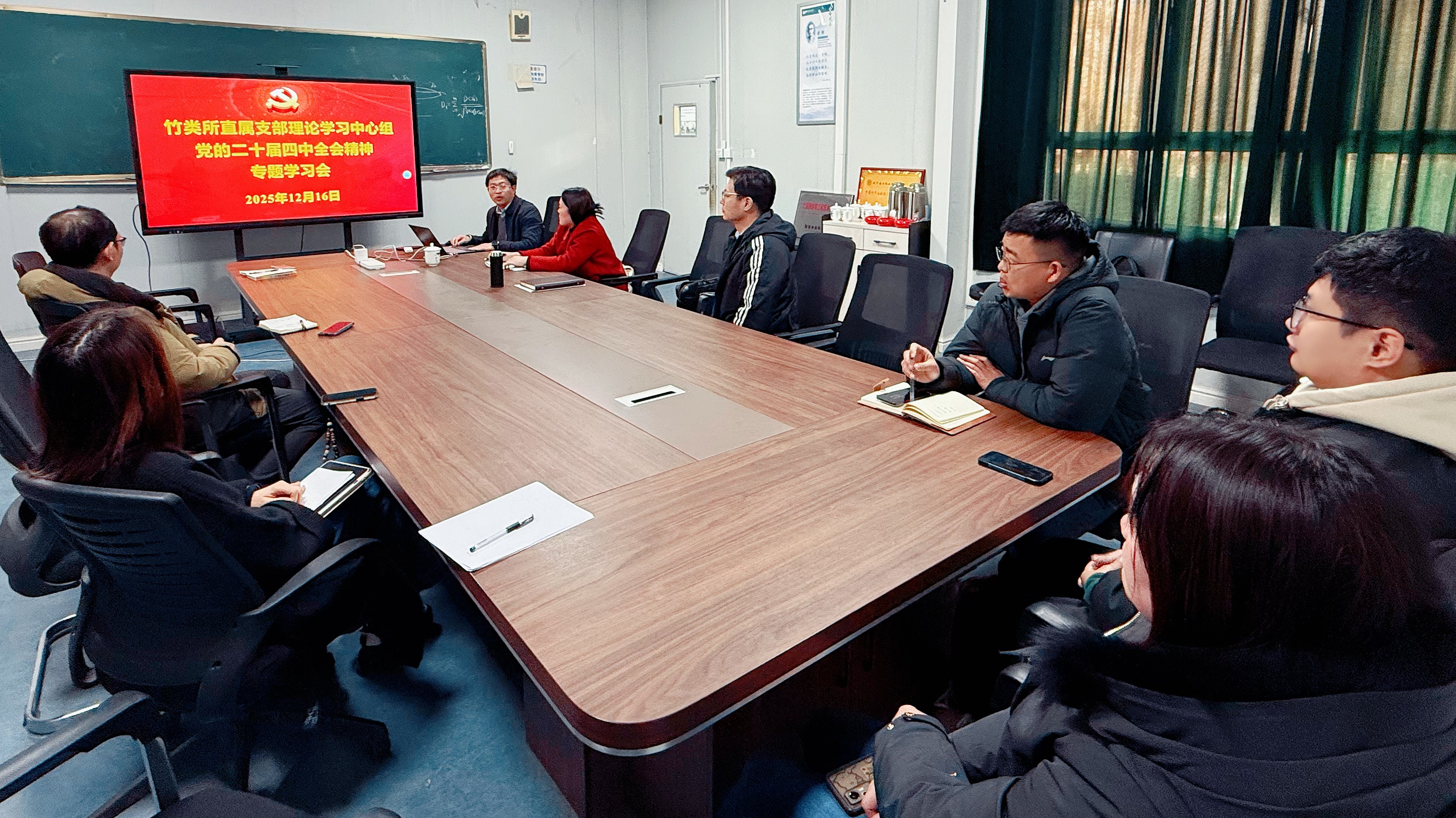 刘国华指出,党的二十届四中全会是在进入基本实现社会主义现代化夯实基础、全面发力的关键时期召开的一次重要会议,学习贯彻好党的二十届四中全会精神,是当前和今后一个时期的一项重大政治任务。全会将科技创新摆在中国式现代化全局的重要位置,这对科研单位提出了明确的方向性要求。支部党员要深刻领悟“两个确立”“四个意识”“四个自信”“两个维护”,聚焦“加快高水平科技自立自强”,立足主责主业,加强原始创新和关键核心技术攻关,把思想和行动统一到党的二十届四中全会决策部署上来,锐意进取,勇攀高峰,持续推进竹类研究所各项工作的落实,确保学习贯彻全会精神取得实实在在的成效。